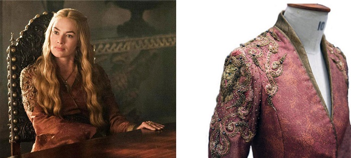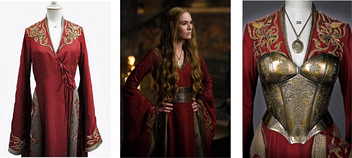 Благодаря вышивке, которую вручную создают костюмеры, наряды королевы выглядят как произведение искусства. Большинство платьев Серсеи выполнены в красно-золотой гамме с изображением льва (главный символ дома Ланистеров), которые обильно украшены бисером и кристаллами «Сваровски».